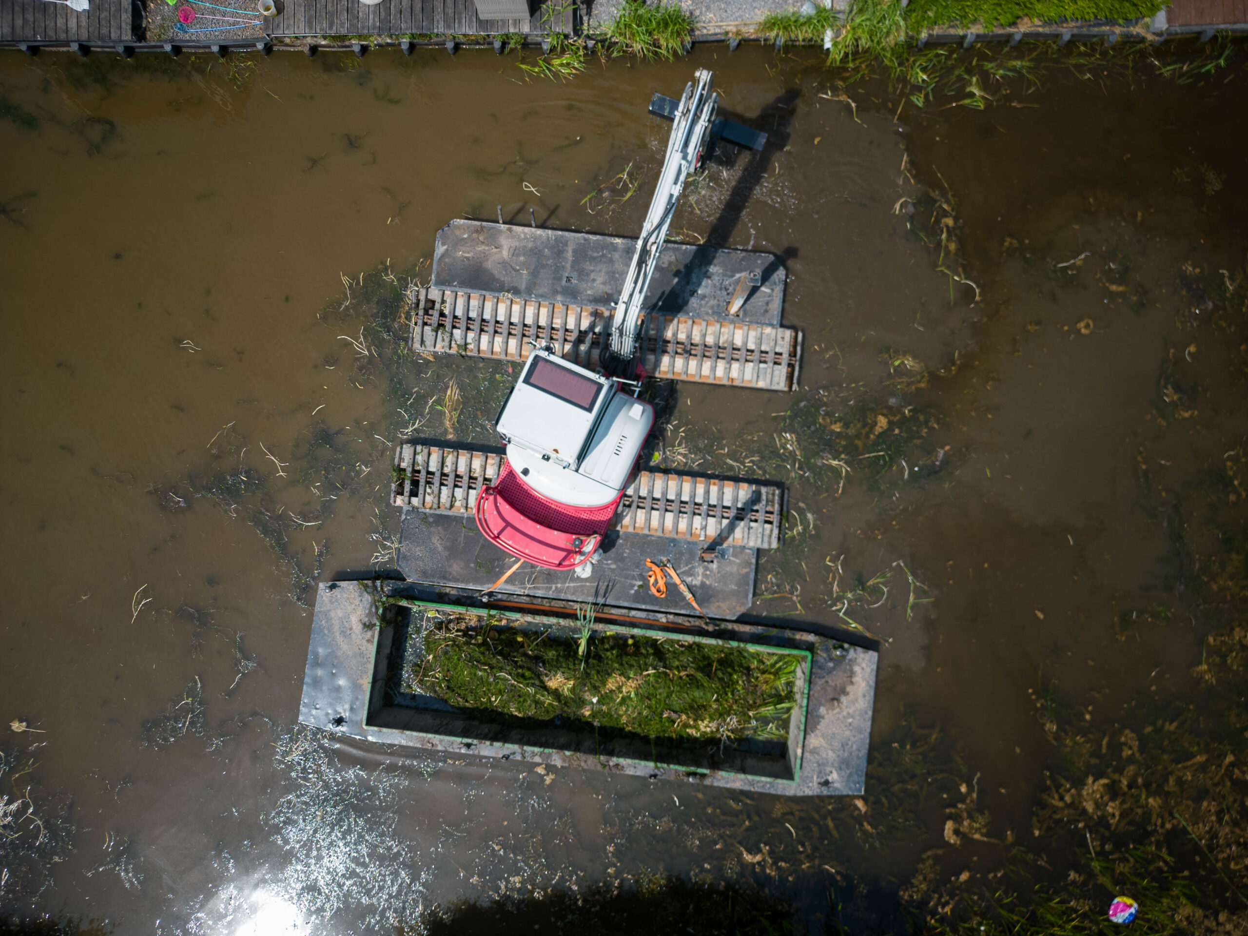 De WK 55 NG-A is de grotere versie van de WK 20. Met een verstelbaar onderstel is deze machine ideaal om in smalle watergangen te werken.