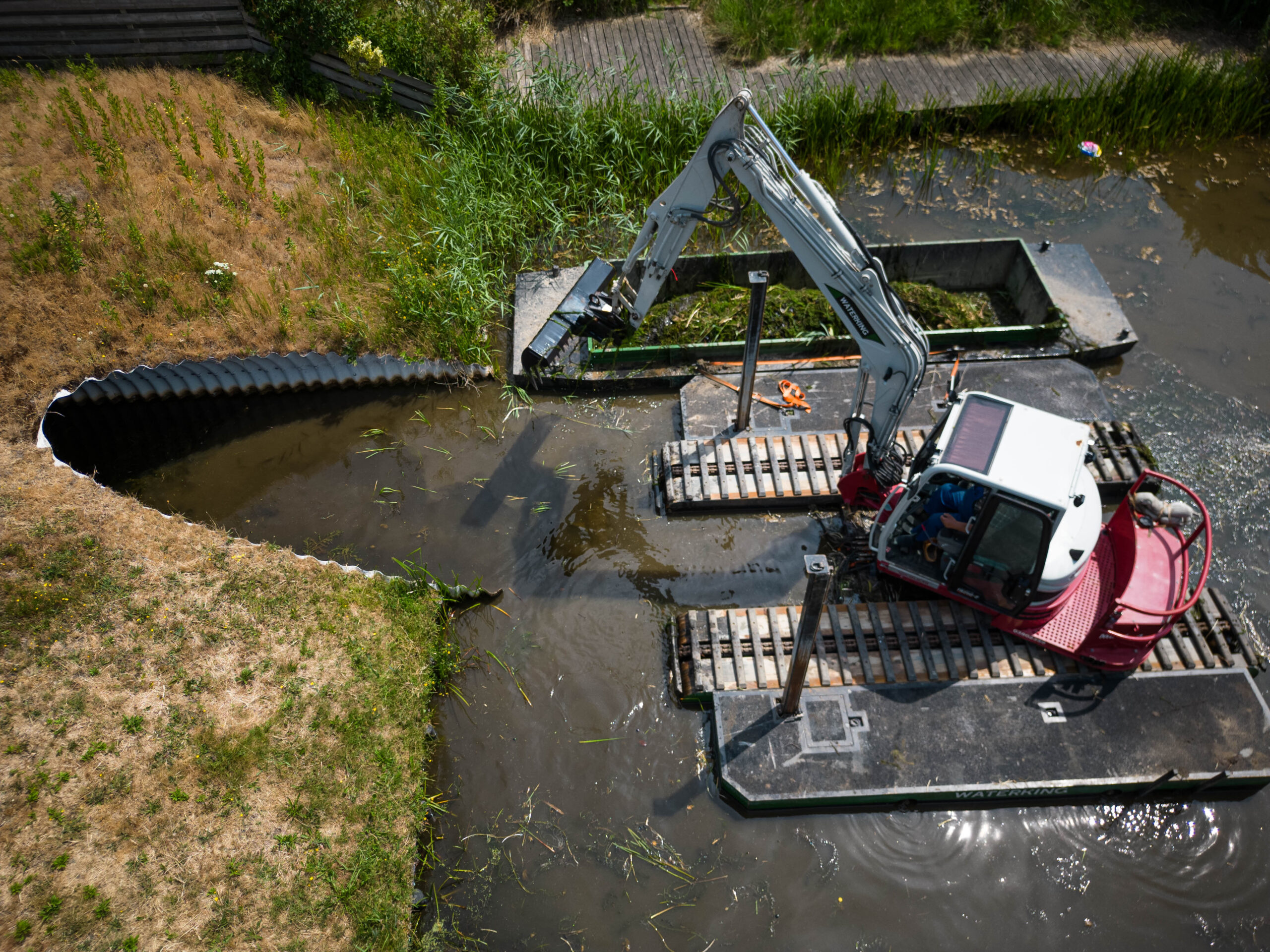 De amfibische graafmachine heeft een trackbreedte van 87 cm waardoor de gronddruk extreem laag is. Hierdoor zijn werkzaamheden op een oever ook mogelijk, zonder de ondergrond significant te beschadigen.